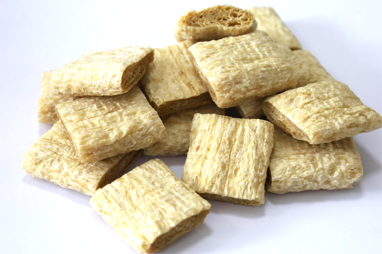 不同于大豆蛋白难以去除的豆腥味,小麦拉丝蛋白具有清淡的小麦原香,没有令人不快的异味。这意味着,它能更好地吸收任何酱料的味道——无论是红烧、麻辣、孜然还是五香,它都能完美驾驭,炖鱼有鱼味、炖肉有肉味,且能大量减少香精和掩盖剂的使用,让产品标签更“清洁”。