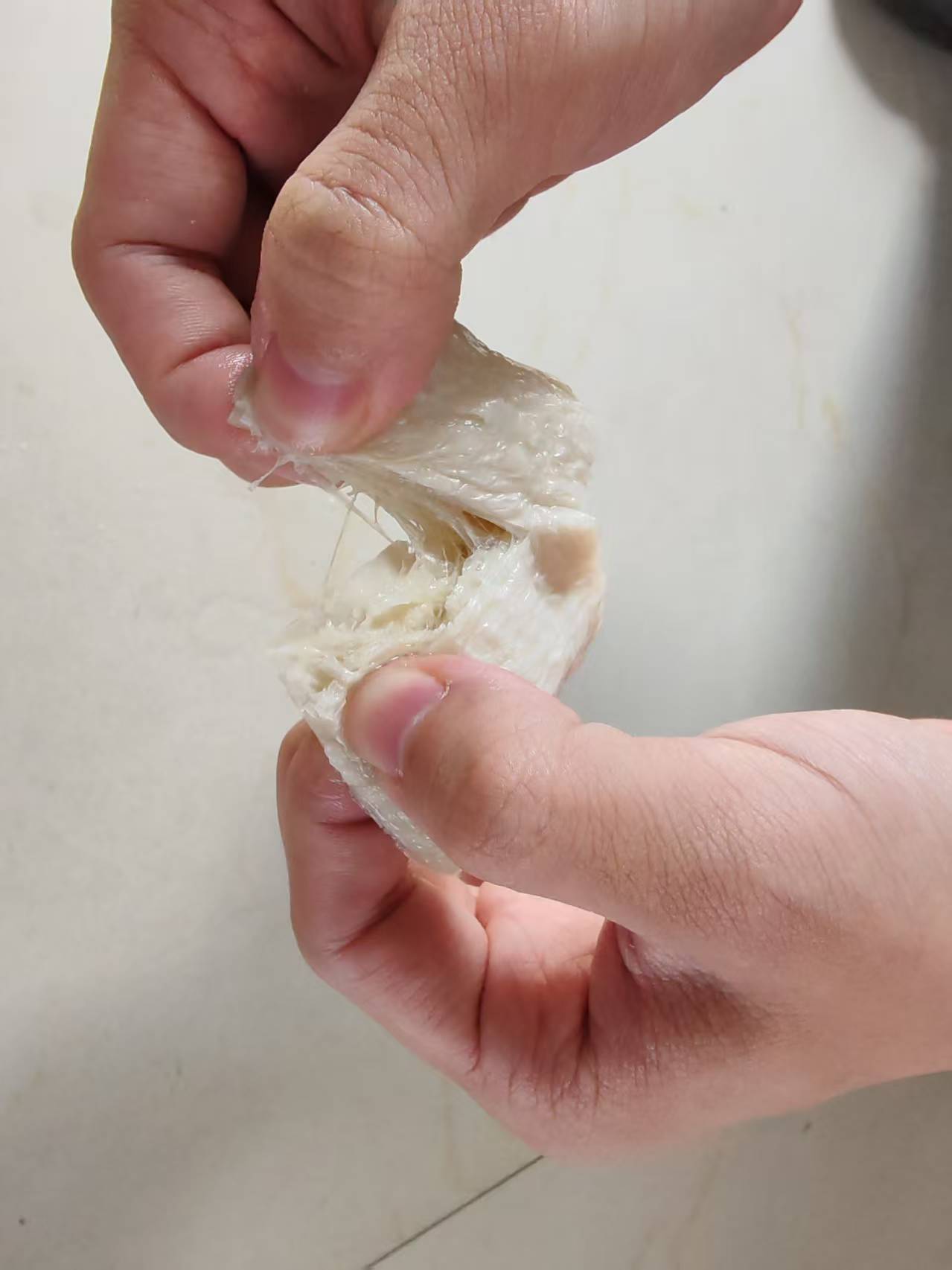 简单来说,它是一种 “会拉丝”的植物肉。当你把它泡开,用手撕开时,那一条条清晰的纤维丝,几乎与真正的瘦肉无异。